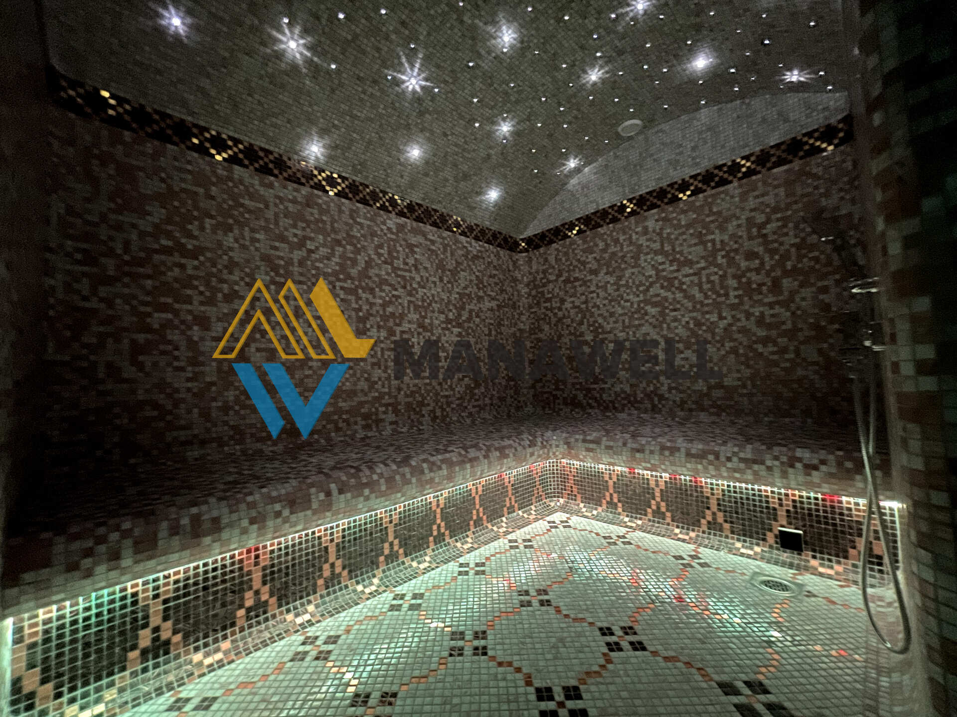 Сочетание высокой влажности, теплого пара, декоративного мозаичного панно и натуральных материалов позволяет получить не только физическое удовлетворение, но и душевное спокойствие.
